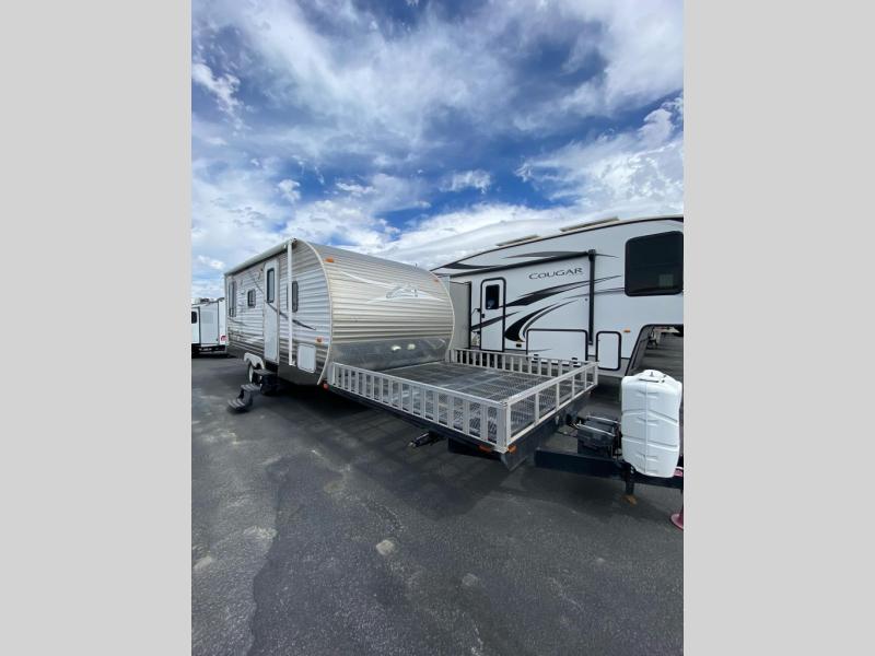 Get the best of both worlds with this 2014 CrossRoads Zinger 218, a unique toy hauler travel trailer that offers comfort, space, and utility all in one affordable package. Designed with versatility in mind, this 34-foot trailer features a rare 8' x 8' front deck, perfect for hauling ATVs, motorcycles, or extra gear—then doubles as your front porch once parked.