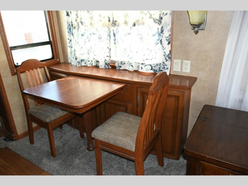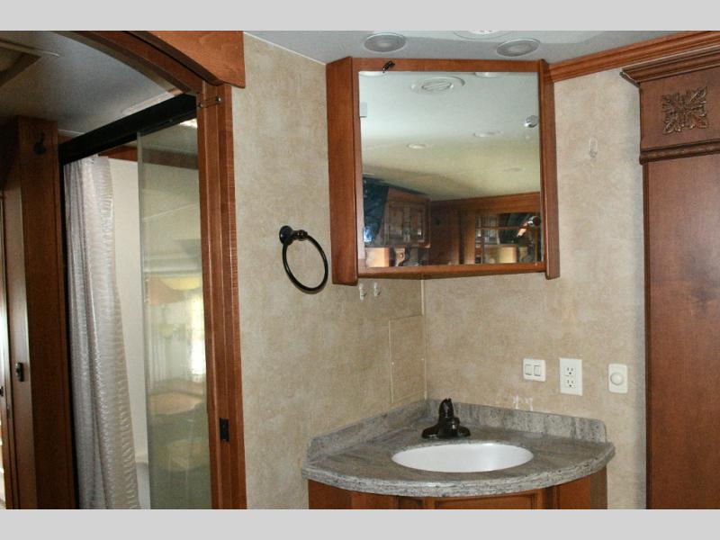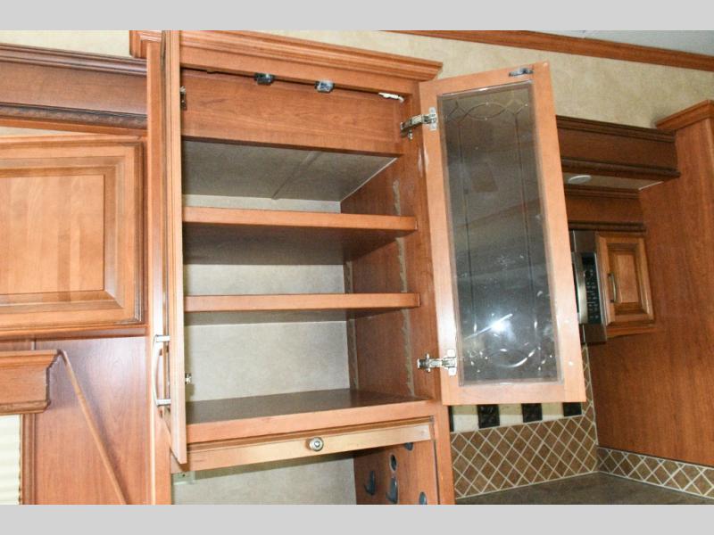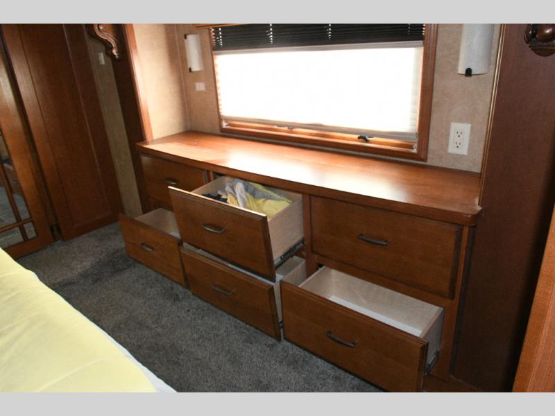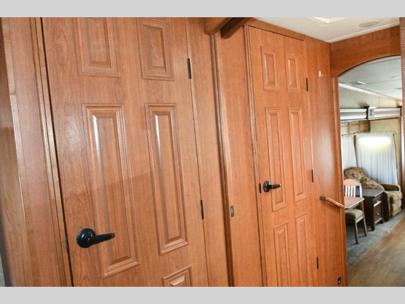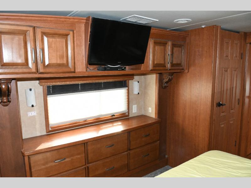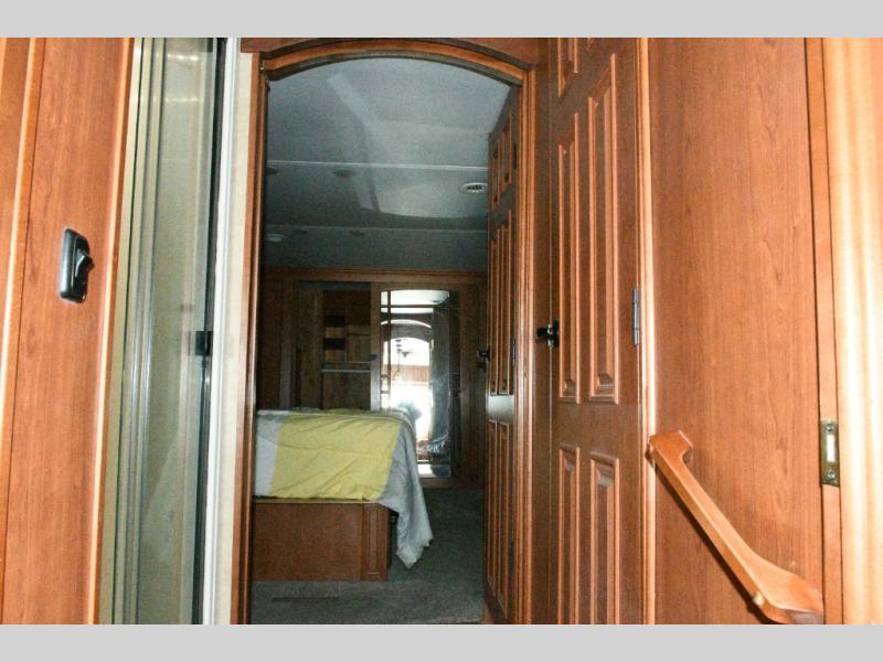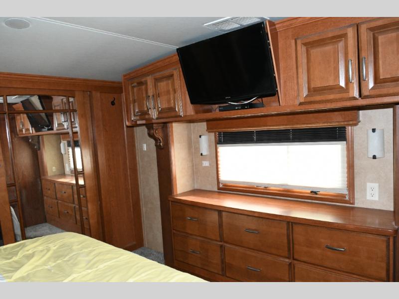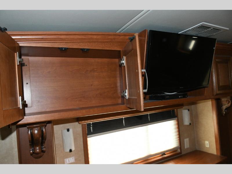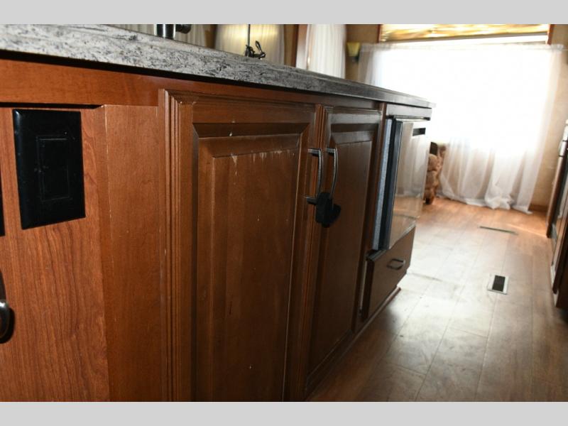 Experience luxury on the road with the used 2014 DRV Luxury Suites Mobile Suites 38 PS3. Designed for comfort and functionality, this fifth wheel combines residential-style living with all the conveniences you need for extended trips or full-time RVing. The rear living area offers a relaxing space to entertain guests, while the kitchen island and pantry provide abundant cooking and storage space. The walk-through bathroom and private toilet area make staying clean and organized effortless.