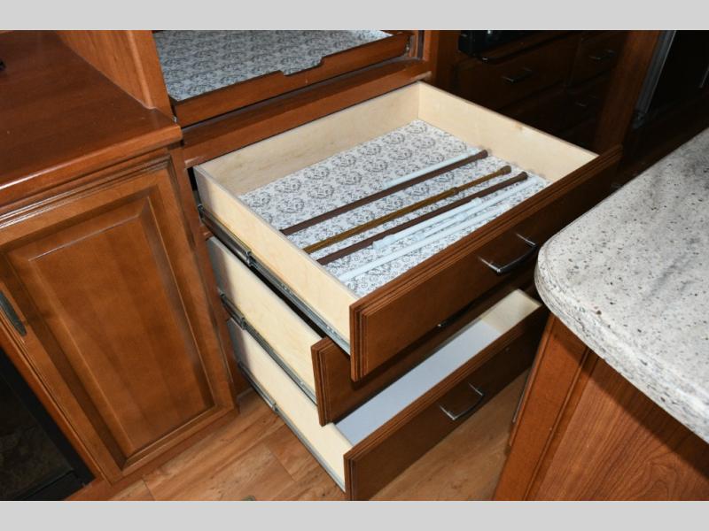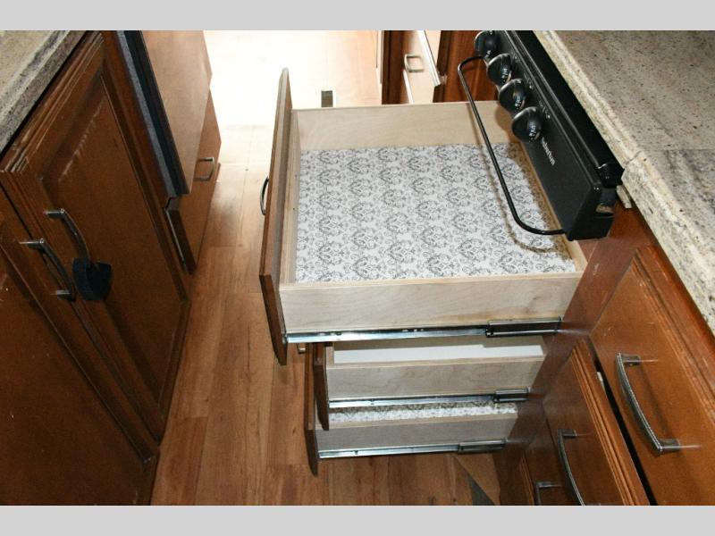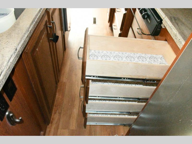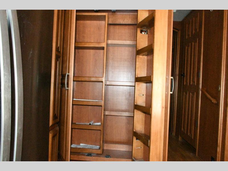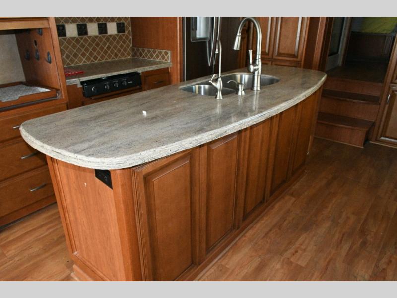 Kitchen Features: Kitchen island with sink, pantry, slide-out range with convection oven, and refrigerator slide