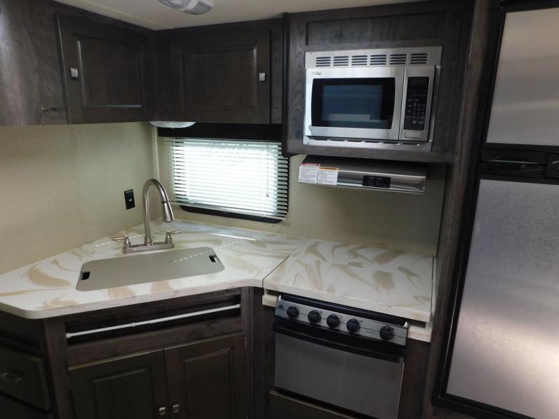 You will have no trouble preparing and cooking up your favorite meals and snacks in this Kodiak kitchen. There is a refrigerator, three burner range, microwave oven, and double kitchen sink for easy cleanup. You will also enjoy plenty of storage in the upper and lower cabinets, plus drawer space also.