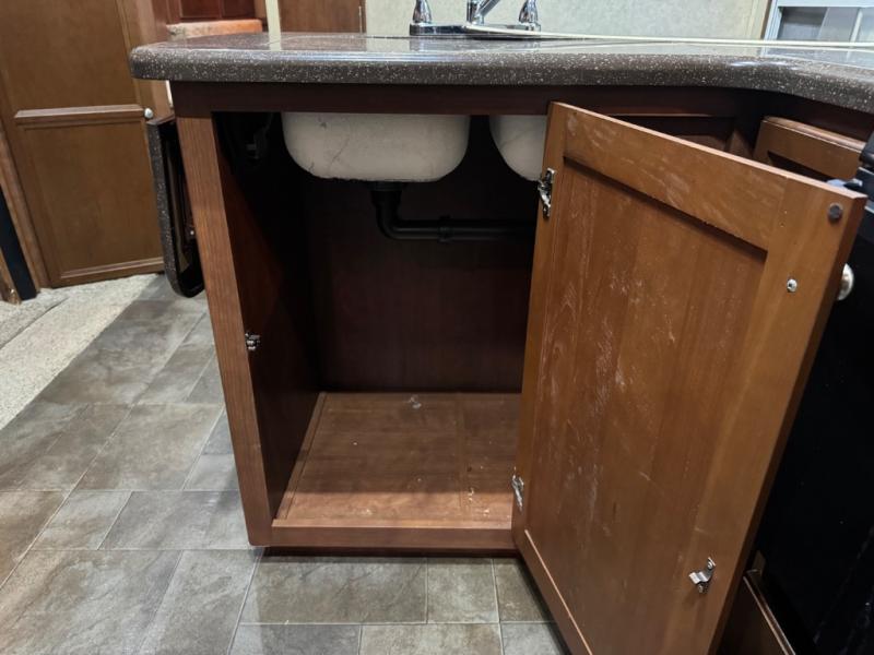 The kitchen offers a spacious area to prepare and cook food for your hungry crew. There is a pantry for dry good storage, a refrigerator, three burner range with 21" oven, and counter area with double kitchen sink. Plus, there is plenty of overhead storage for all of your dishes and things.