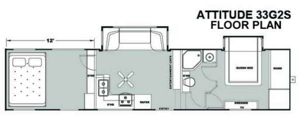 The Attitude Garage 33G2S toy hauler fifth wheel by Eclipse RV offers a large cargo area which is ideal for storing your favorite off road toys while you travel to your destination.