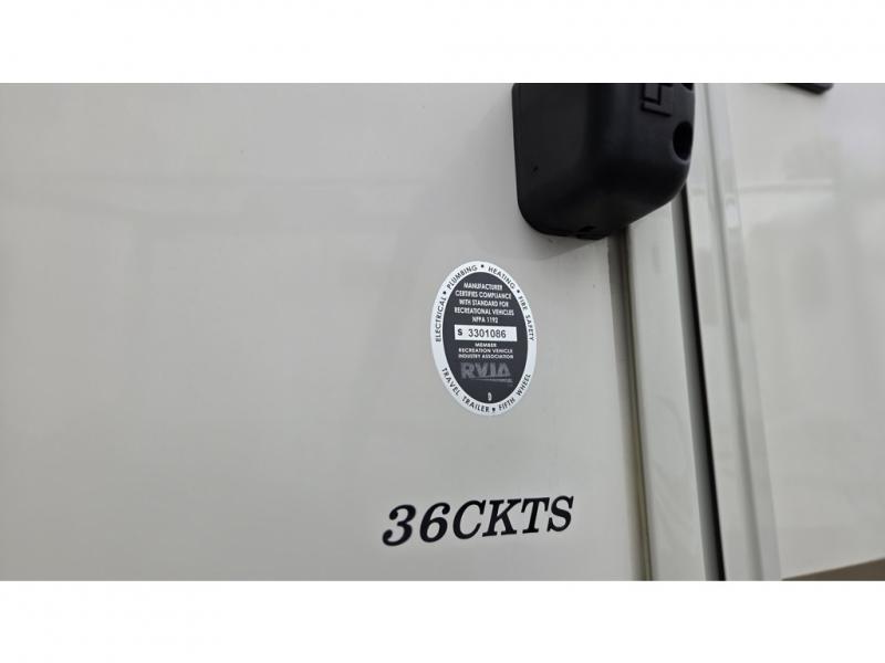 This triple slide Cedar Creek 36RKTS Fifth Wheel by Forest River offers spacious living accommodations for all the comforts of home.