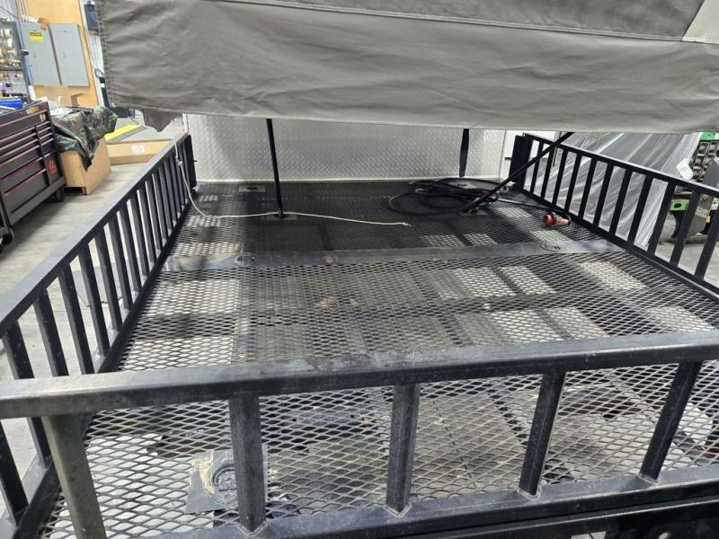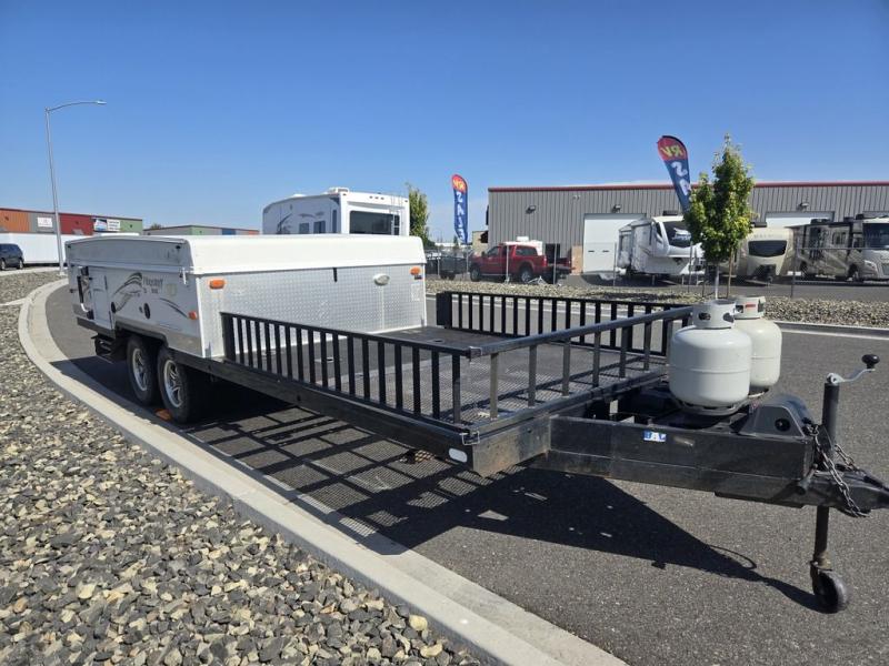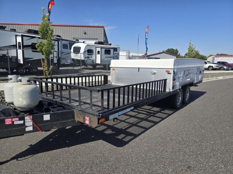 The Flagstaff MAC/LTD BR28TSC folding pop-up camper by Forest River offers a single slide and a 105" x 84" front deck storage with expanded metal decking.