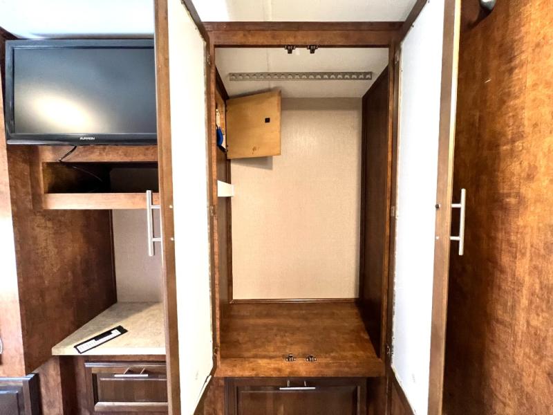 In the rear you will find a queen bed slide and two wardrobes.