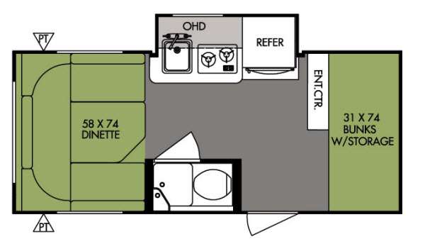 The RP-176 R-Pod travel trailer by Forest River, offers a single slide and a u-dinette.