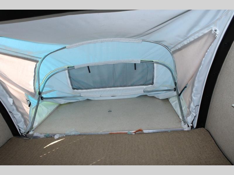 In the front of the trailer there is a set of bunk beds.