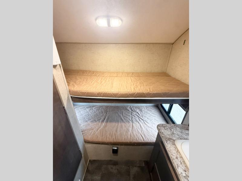 In the rear, you will find a set of bunk beds. Next to the bunk beds there is a toilet and shower.