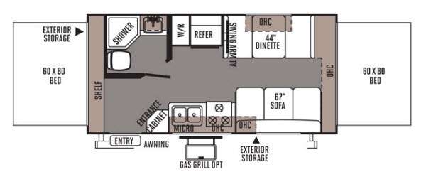 The Rockwood Roo 19 expandable by Forest River welcomes you with front and rear queen tent beds.