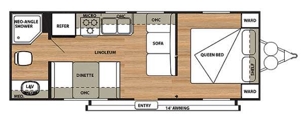 There are plenty of overhead cabinets throughout the travel trailer, so you can bring all of your necessary items from home.