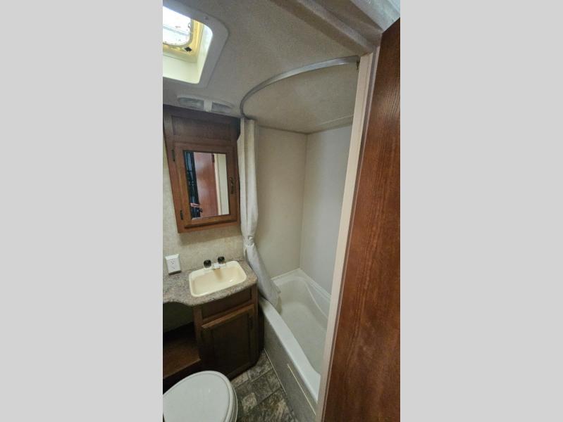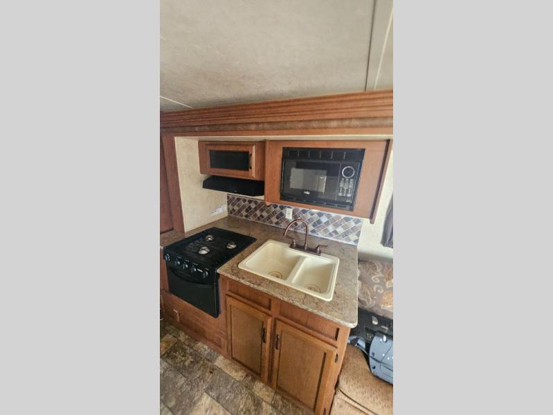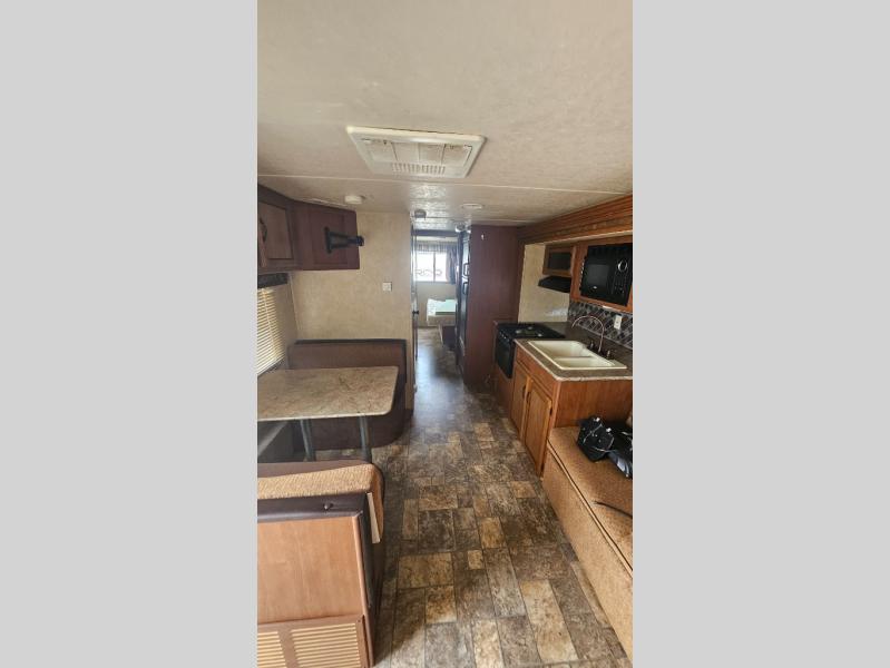 Double Slide Salem Cruise Lite Travel Trailer, Rear Queen Bed Slide, Wardrobe, Tub, Lav., Med. Cab., Toilet, Dinette, Front Bedroom w/Double Bunk Beds, Sofa/Dbl. Kitchen Sink, 3-Burner Range, Refrigerator, Pantry, Overhead Cabinets