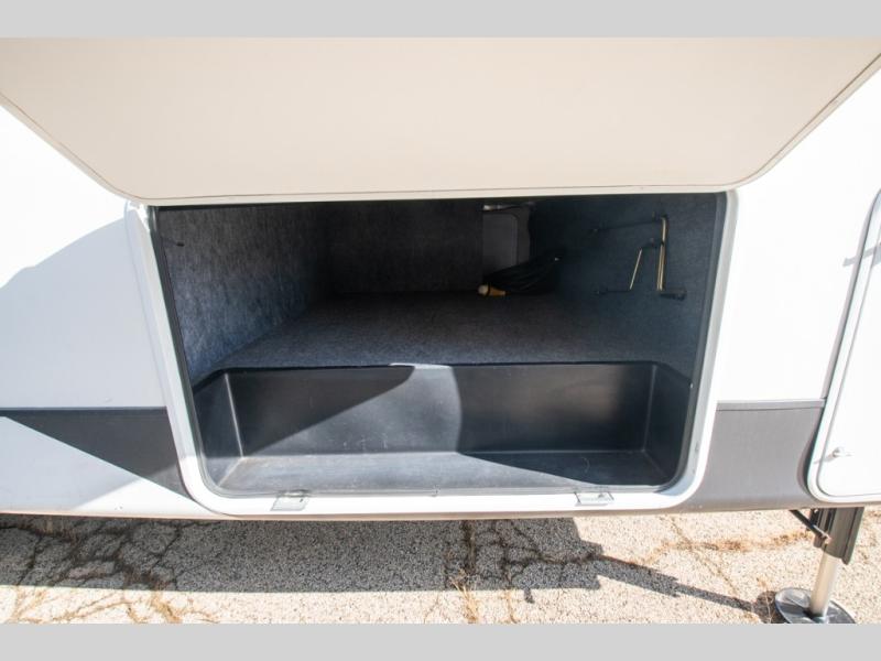 There are plenty of overhead cabinets throughout the fifth wheel as well as a large pass thru storage.