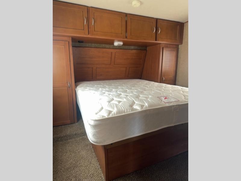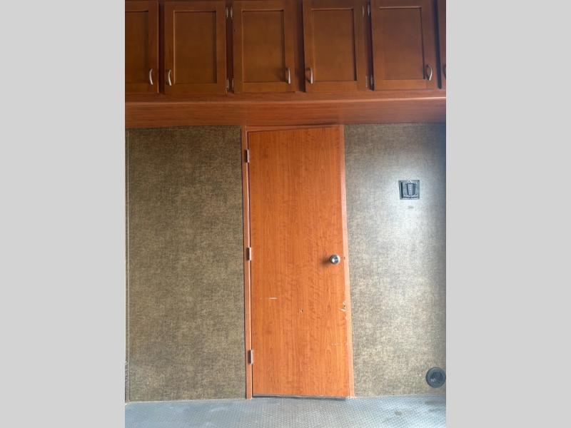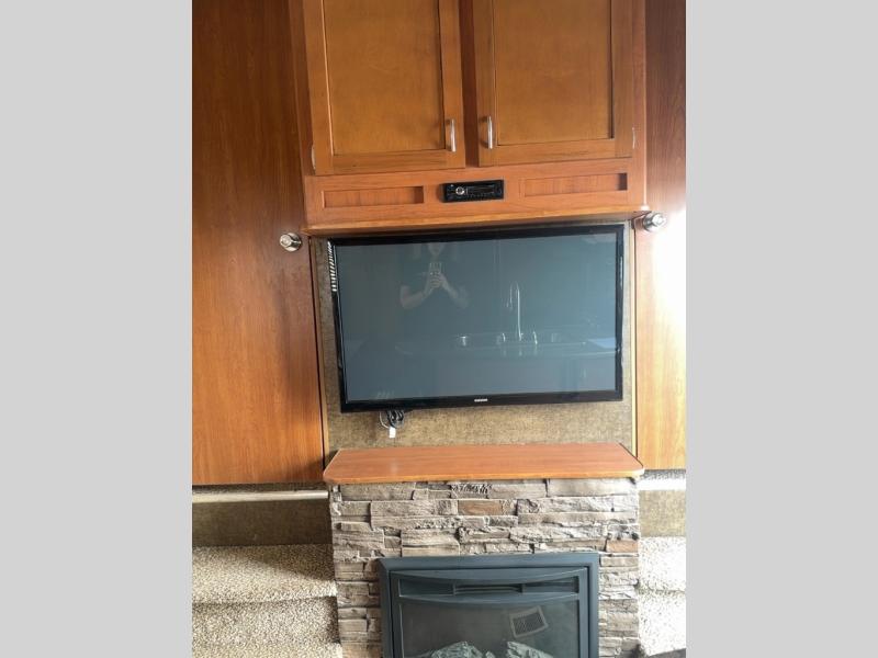 There is plenty of overhead cabinets throughout this fifth wheel. You will also find an outside tv mount.