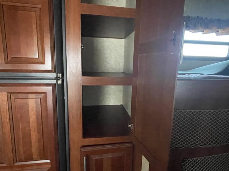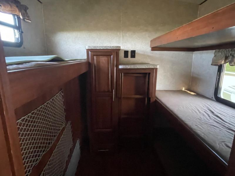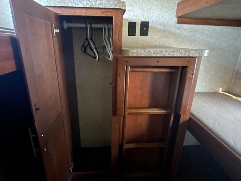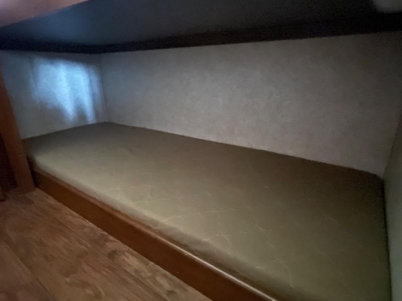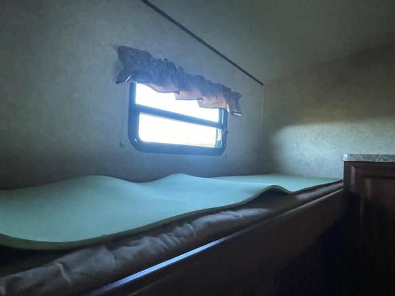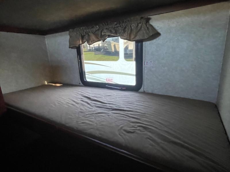 The 312BHX eXtraLite Wildcat fifth wheel by Forest River features a rear bunkhouse for more space for your kids. You will find a set of double bunks, wardrobe, booth dinette, and a bunk above the booth dinette. The bunkhouse has its own private door.
