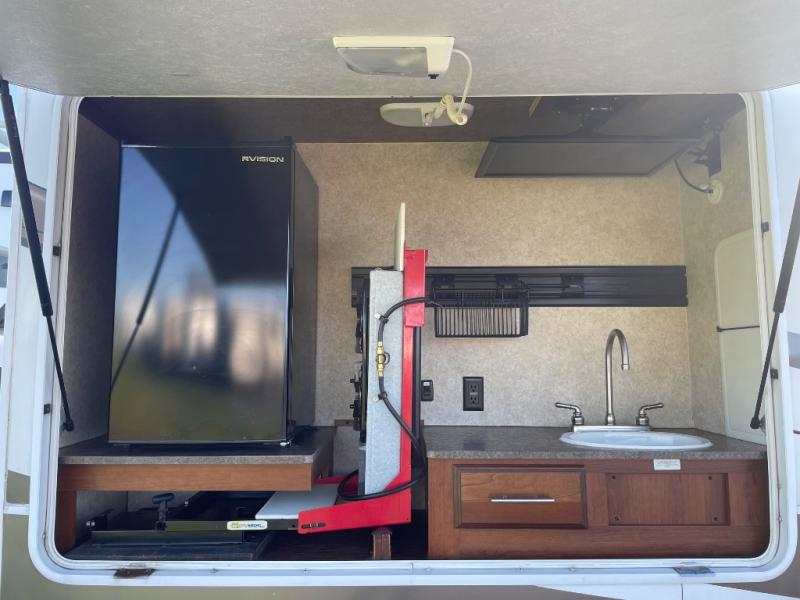 Outside you will find an exterior foldout kitchenette which is not included with the outside kitchen option.