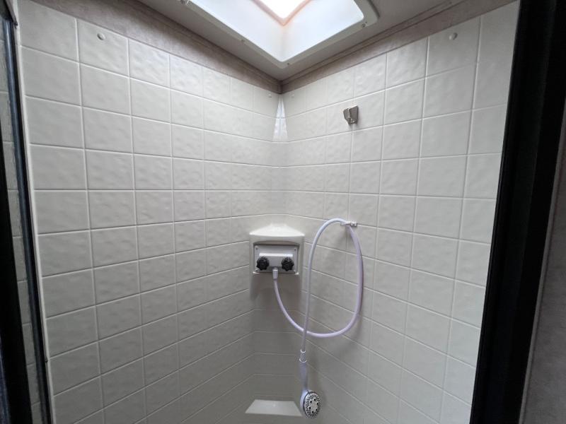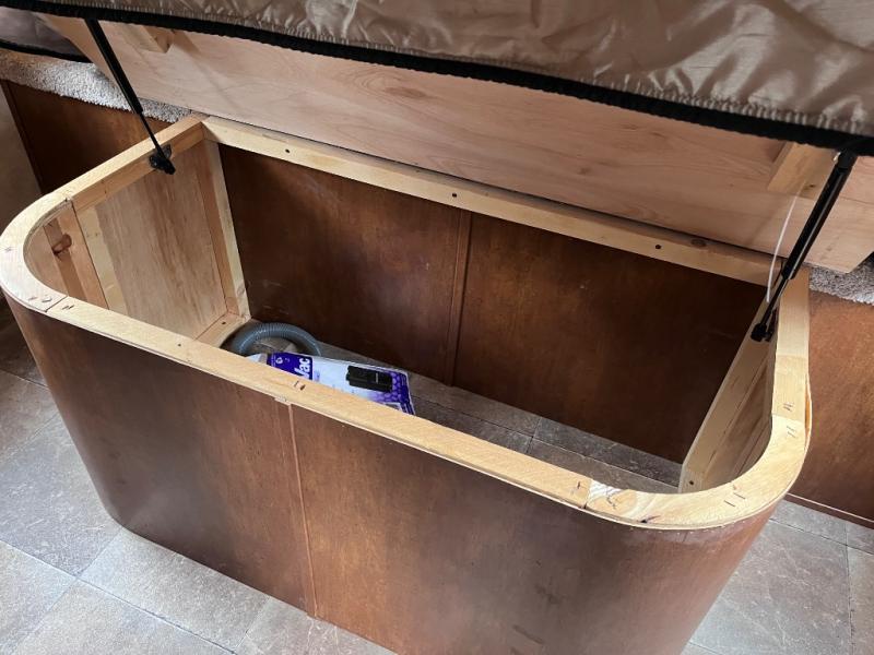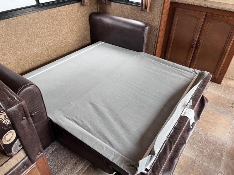 There are plenty of overhead cabinets throughout the travel trailer as well as a large pass thru storage area.