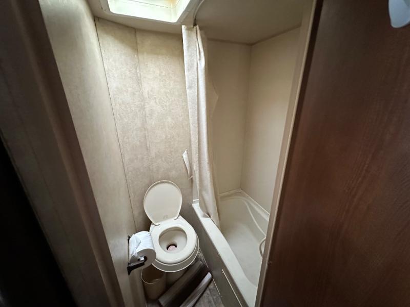 There is also a rear bath with a toilet, shower, and sink.