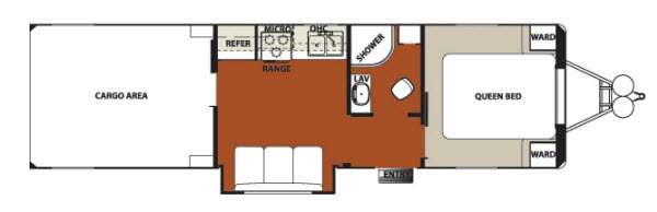 The Work and Play 30WRS toy hauler travel trailer by Forest River offers a large cargo area to store and haul your favorite off road toys.