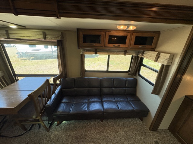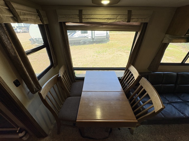 Just inside the main entry you will find an optional free standing dinette table and chairs, plus theater seating in a slide out.