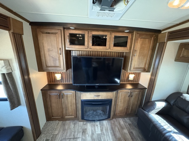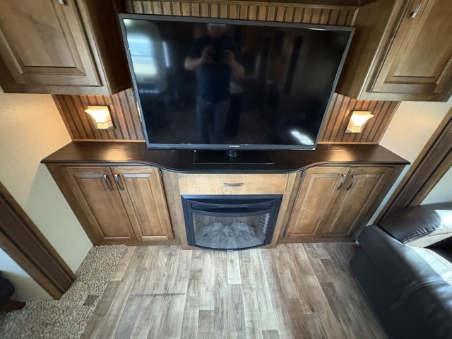 The rear wall features a 46" TV / entertainment center with fireplace for those chilly nights or when you are just looking for a little ambiance and want a nice warm glow.