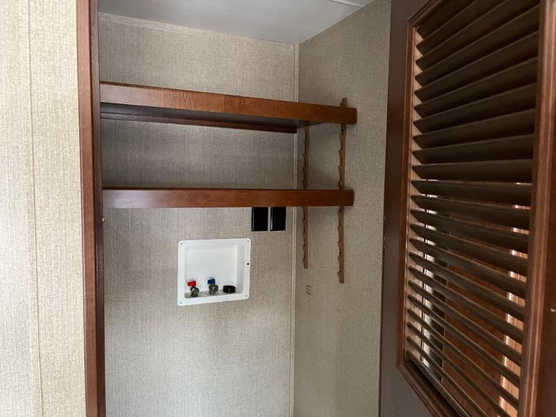 Continue passed the bath and take two steps up to a front bedroom with king bed slide including storage. There is a wardrobe slide opposite the bed, and a closet with washer/dryer prep for added convenience, and so much more!