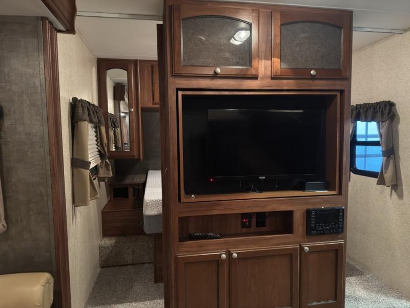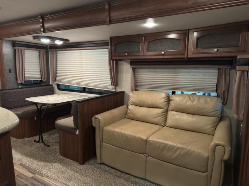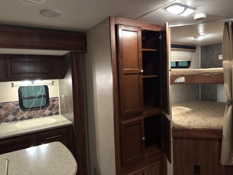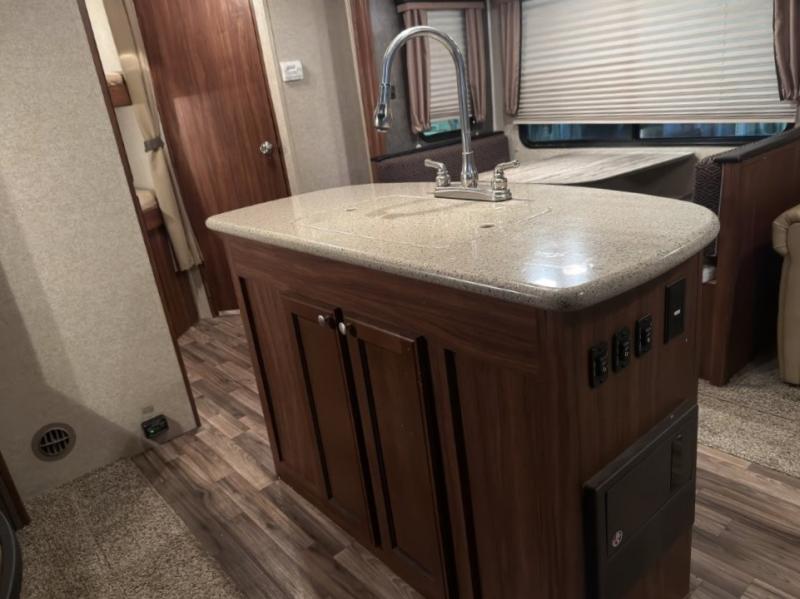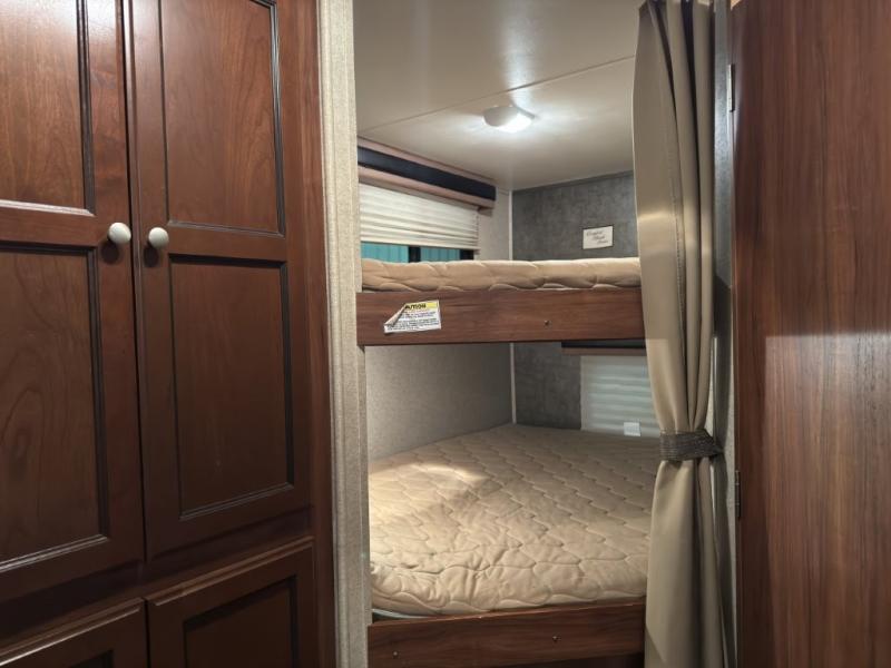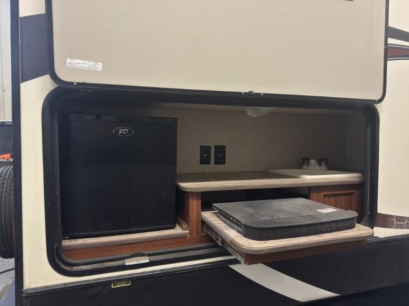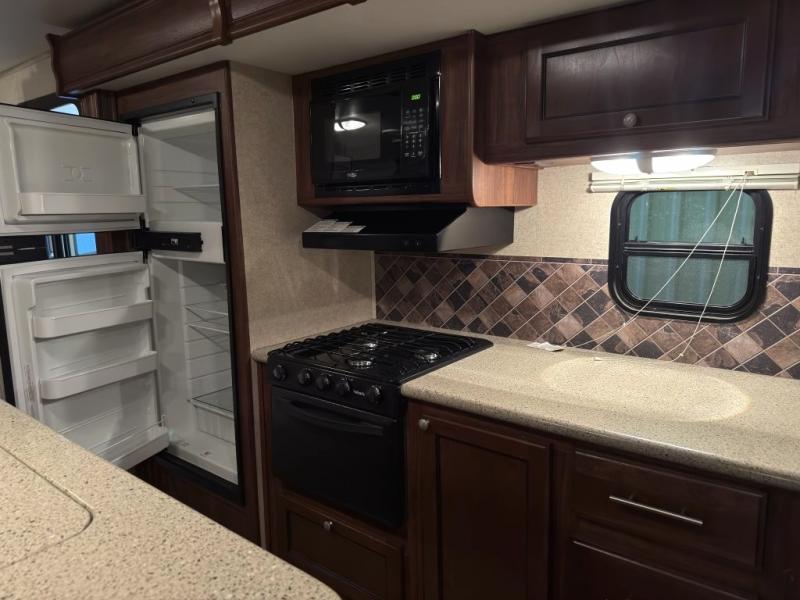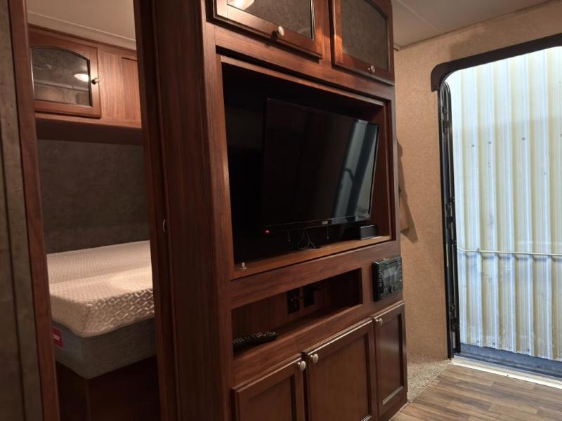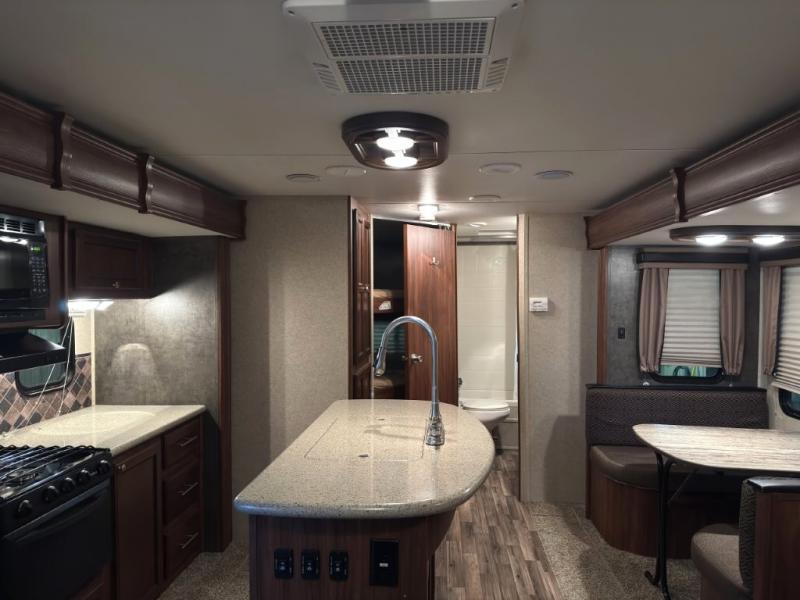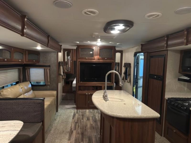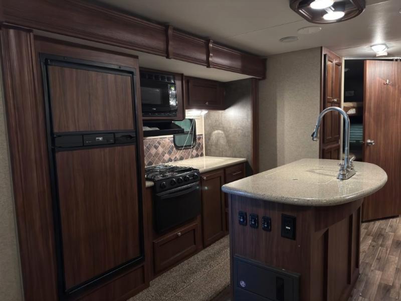 Step inside 27BHDS and see just how easy camping with your family will be. The open concept kitchen and living space features dual slides opposite one another for maximum space. There is a center kitchen island with double sink for convenient food prep and cleanup. There is also a swivel TV box entertainment center for living room and bedroom viewing for your enjoyment.