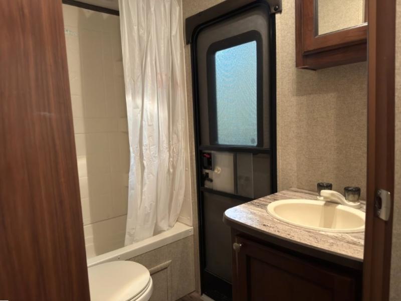 In the rear of the unit you will find a complete bath in the rear right corner with private entry. There is a tub/shower, toilet and sink.