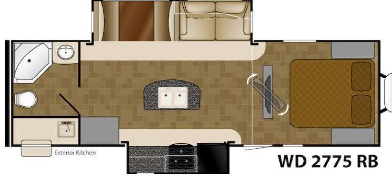 Model 2775RB has everything you need for spending time away from home. Step inside and see all the conveniences you will enjoy!