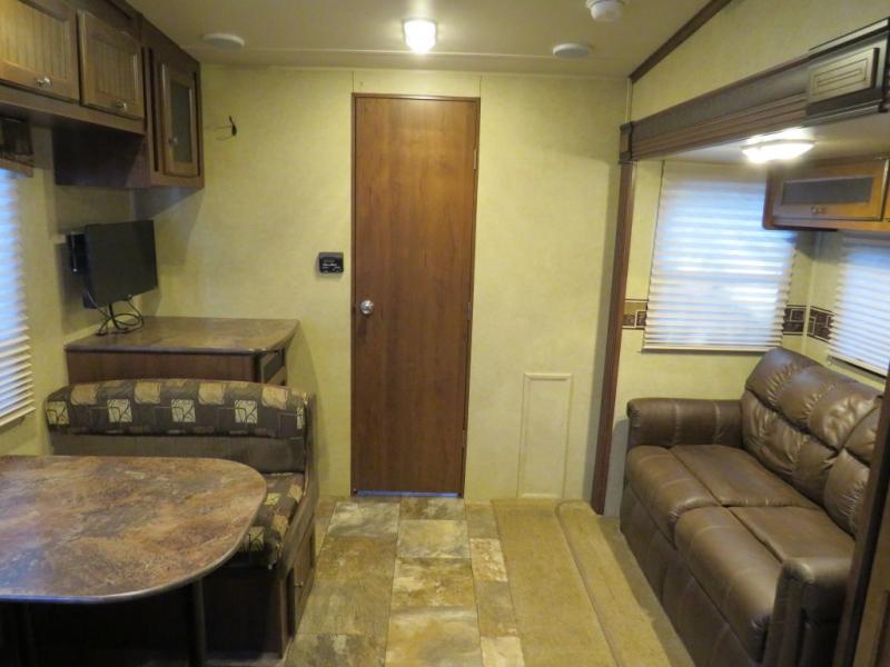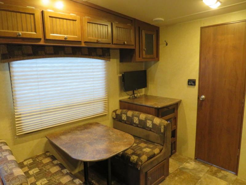 There are plenty of overhead cabinets throughout the 23 5RBS fifth wheel as well as exterior storage.