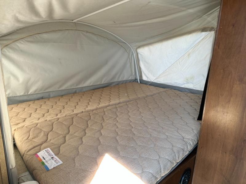 The Jay Feather Ultra Lite expandable X19H by Jayco offers a rear and front bed.