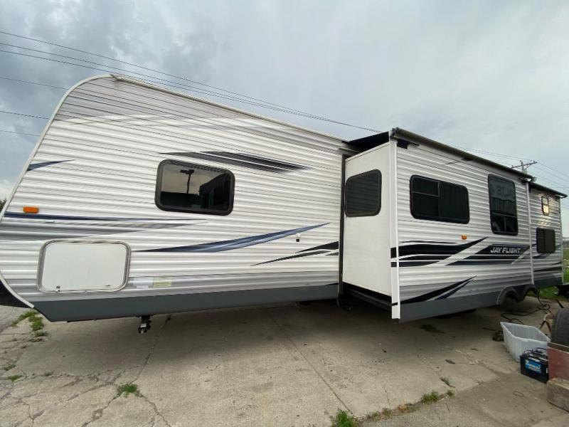 The 33BHTS Jay Flight travel trailer by Jayco offers triple slides and a bunk house.