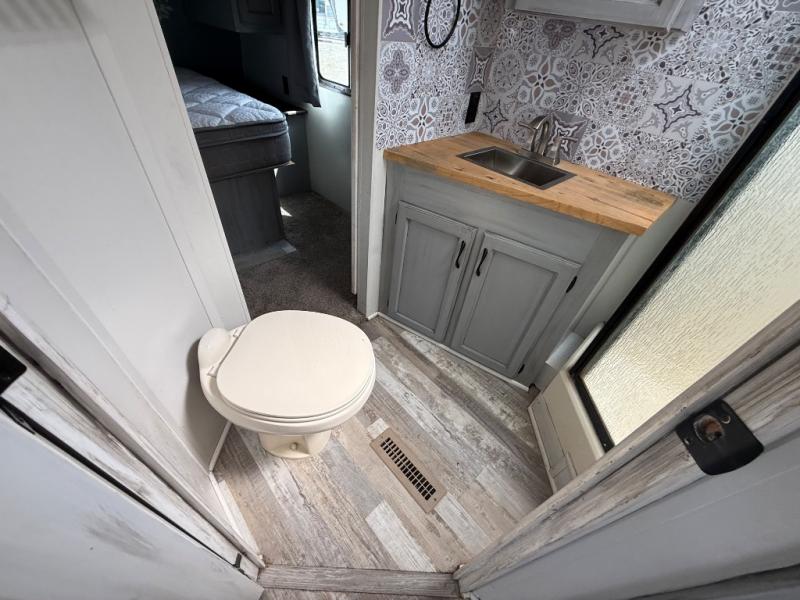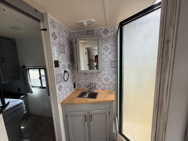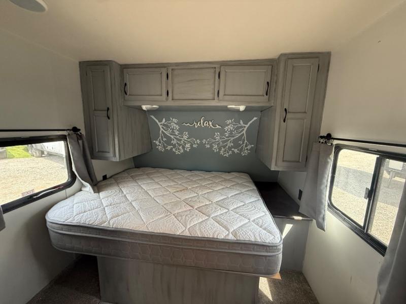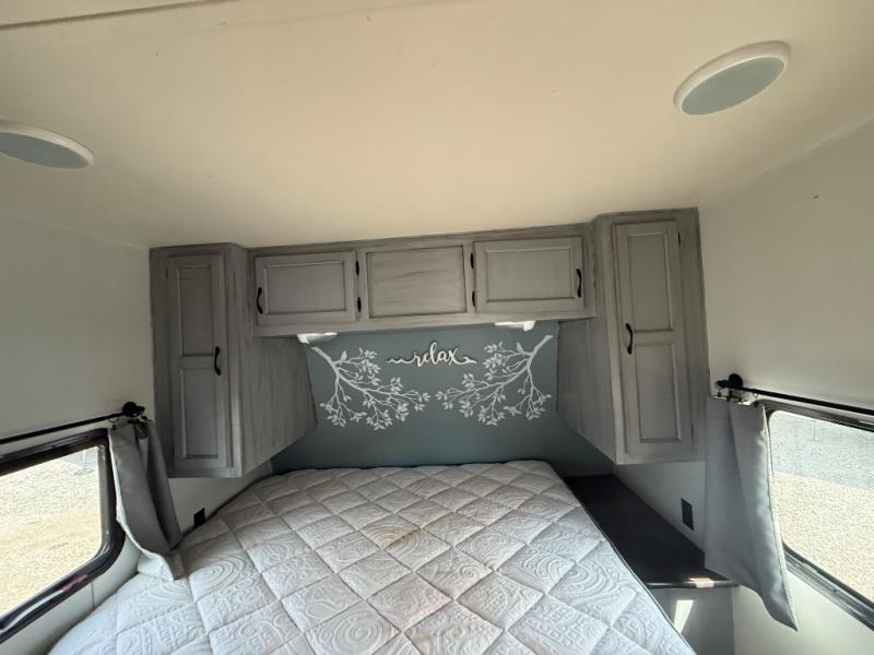You will find plenty of overhead cabinets throughout the travel trailer as well as exterior storage.