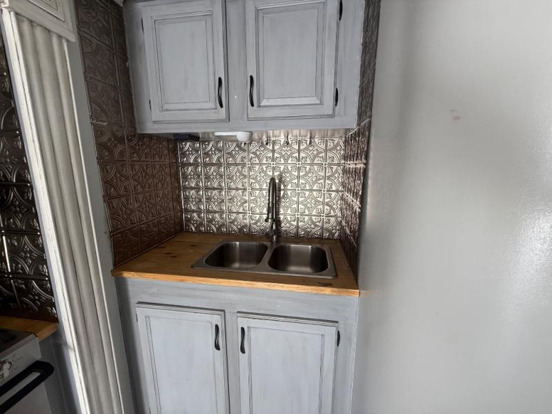 Outside you will find an exterior kitchen with a slideout stove, refrigerator, and sink.