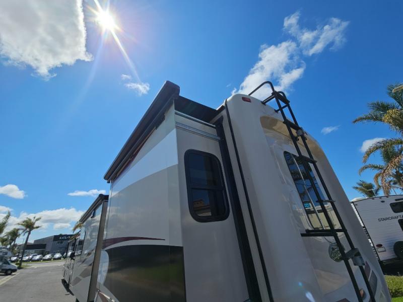 There are plenty of overhead cabinets throughout the 31UL, as well as exterior storage. You can even enjoy the outside entertainment center.