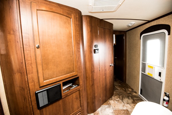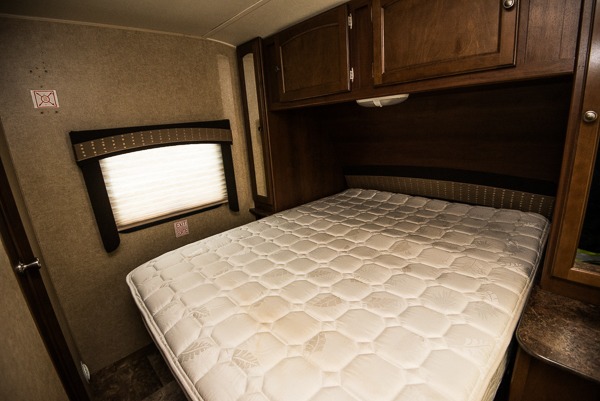 The front bedroom has a front queen bed and two wardrobes, one on either side of the bed.