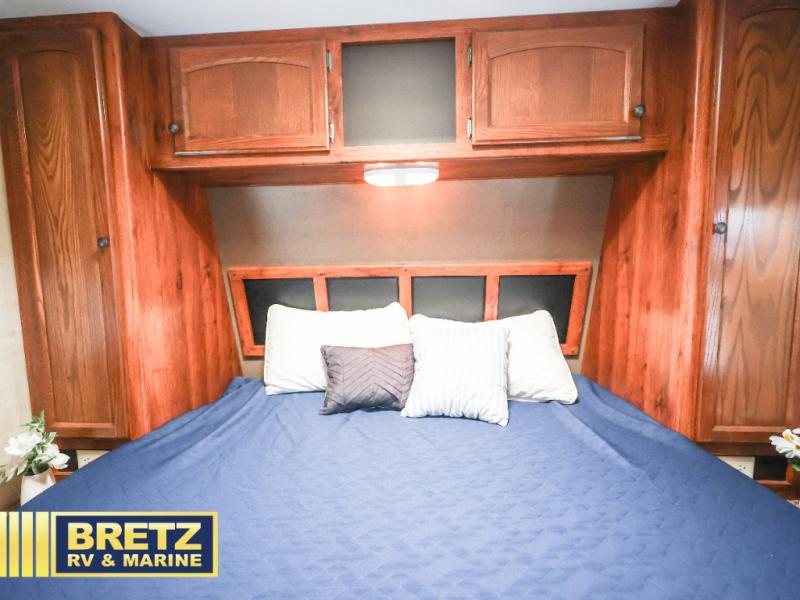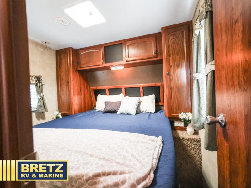 No worries about cleaning up for the night with a full bath featuring a tub/shower, toilet and sink. And, when the day is done rest comfortably in the private front bedroom with hall entry door. The bedroom features a queen bed and two beside closets, plus an overhead storage cabinet as well.