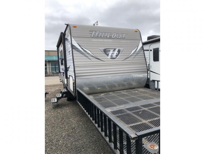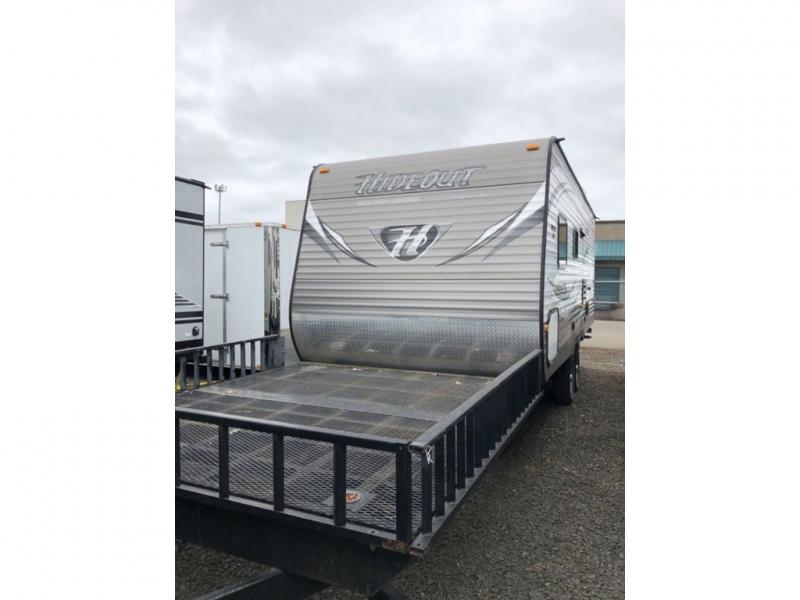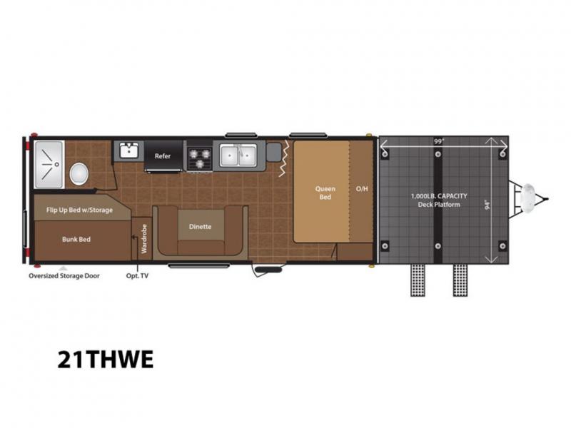 This Hideout travel trailer model 21THWE has an awesome front deck platform with 1,000 lb. capacity to take along a few of your fun toys while camping. Use the ramps to make loading and unloading a cinch. The deck measures 8'3" in length from hitch to camper, and just under 8' in width.