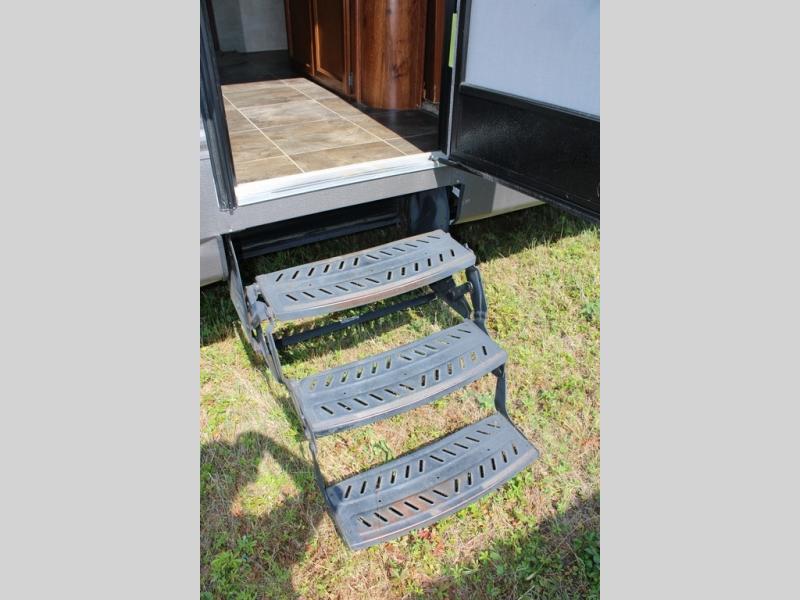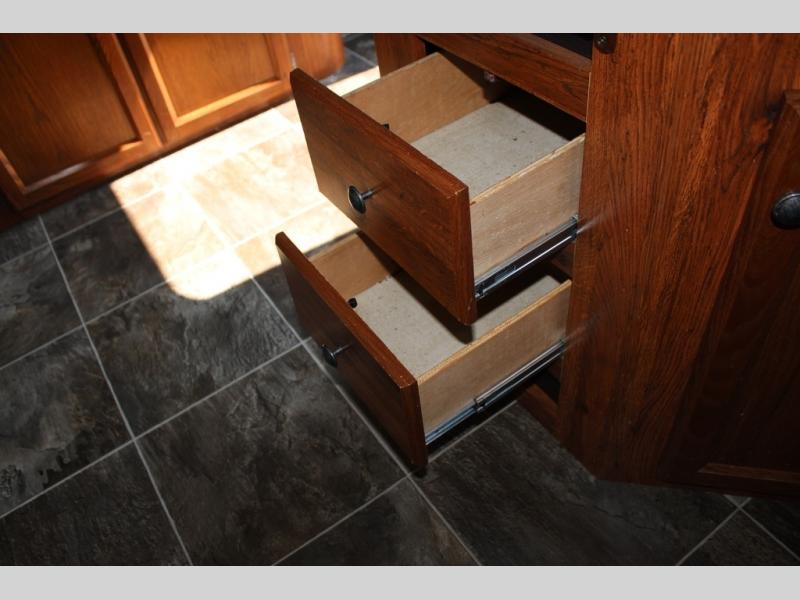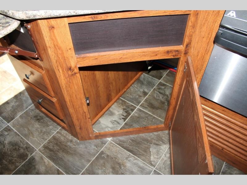 There is certainly no lack of storage space inside or out with a front pass-through compartment, and rear exterior storage, plus all of the overhead cabinets, closet space and wardrobes throughout!