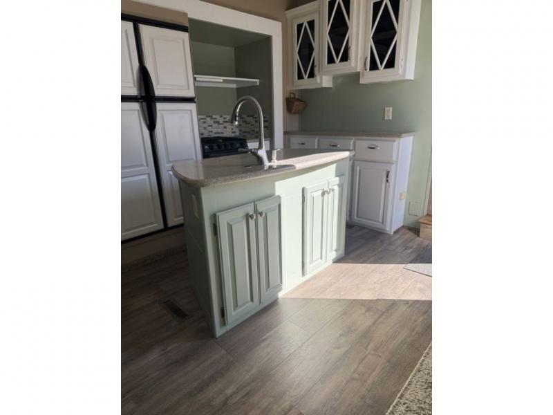 pantry on the interior wall and a convenient kitchen island with double sink too.