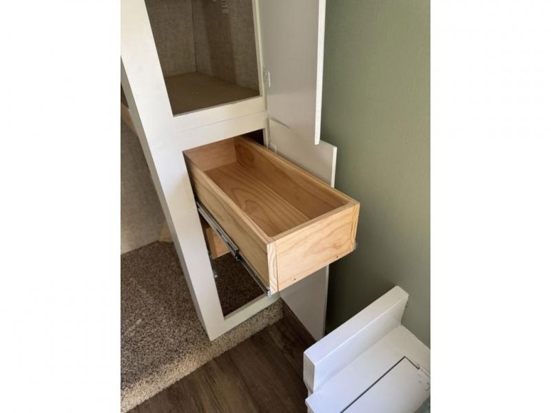 The front bedroom features a king bed slide, with a platform for a queen size mattrass, built in