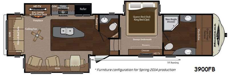Step inside this Keystone Montana fifth wheel 3900FB and be pleasantly surprised. It features a rear living layout, one and a half baths with a large front full bath, and convenient kitchen island, plus optional king size bed and fireplace if you like!