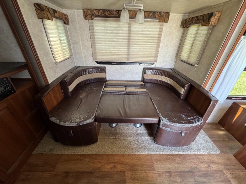 A slide-out u-shaped dinette provides plenty of seating and extra space inside. And you can easily enjoy the LCD TV located nearby.