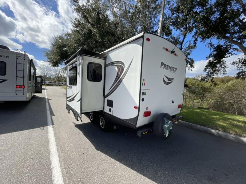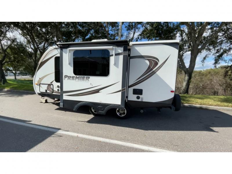 Enjoy camping in this Keystone Premier Ultra Lite travel trailer 22RBPR. This unit features a single slide, rear bath, and outdoor kitchen.