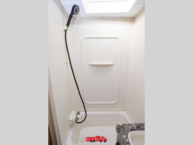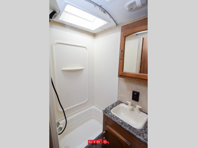 Step inside and notice the private front bedroom with sliding door. Inside there is a queen size bed, plus nightstands on either side of the bed with storage closets above. You will also enjoy the overhead cabinets too.