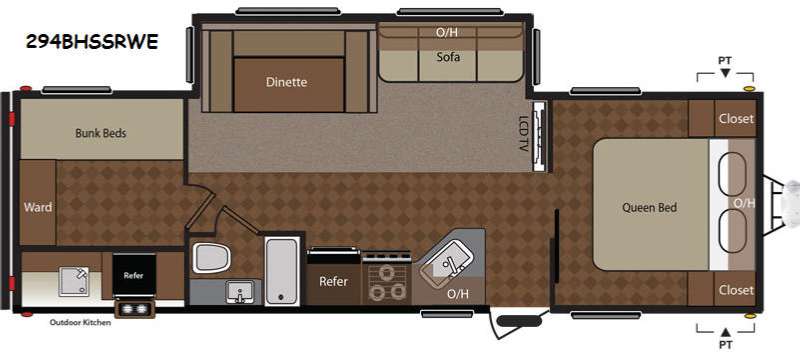 This Keystone Springdale travel trailer 294BHSSR features a private bunkhouse, a large slide for added interior space, and an outdoor kitchen that the cook in the family will love!