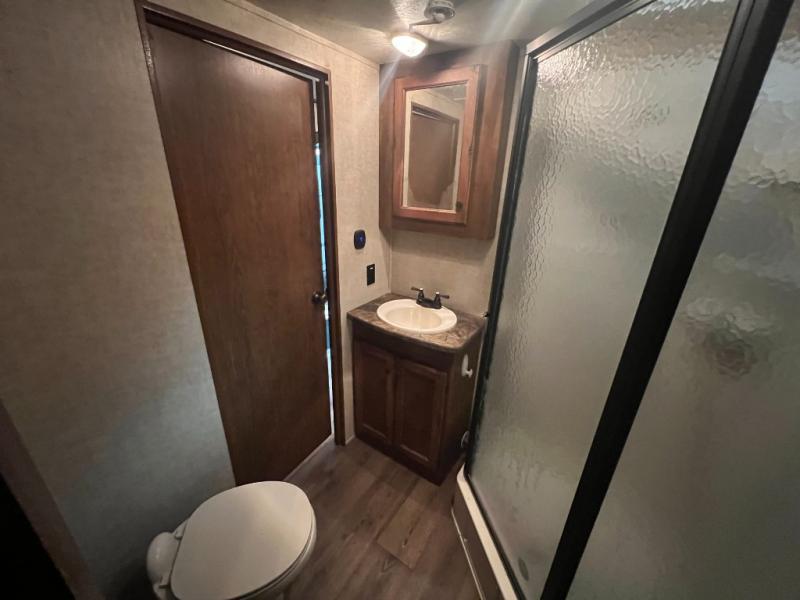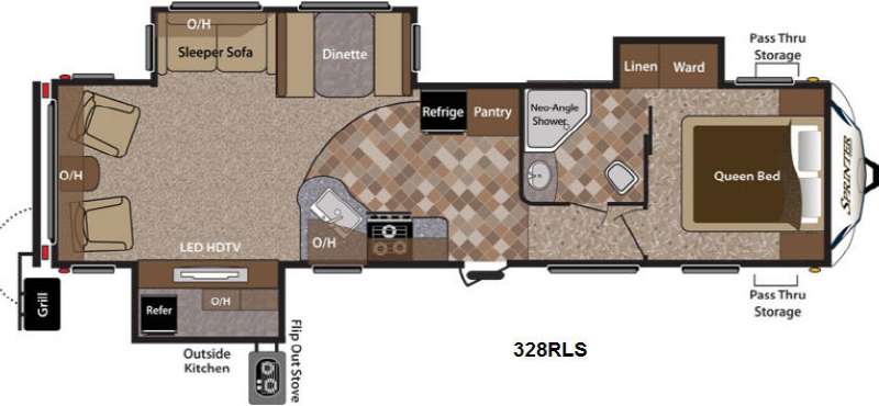 Keystone Sprinter Travel Trailer w/Rear Living Area Including: 2 Lounge Chairs, End Table Between & Overhead Storage Cabinets, Slideout LED HDTV w/Overhead, Sleeper Sofa & Booth Dinette Slide, Dbl. Kitchen Sink, 3 Burner Range, Refrig., Pantry, Step Up to Side Aisle Bath w/Neo-Angle Shower, Toilet & Sink, Dbl. Bath Entry, Front Queen Bed w/Wardrobe & Storage Cabinet, Linen/Wardrobe Slide, Front Pass-Thru Storage, Outside Kitchen in TV Slideout w/Flip-Out Stove, Grill, Refrig., Storage & More!