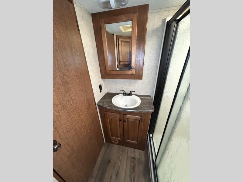 This Sprinter fifth wheel model 269FWRLS features a wide body design with an 8'4" width for added space. You will enjoy a rear living layout, double slides, a king bed, and a fireplace also!