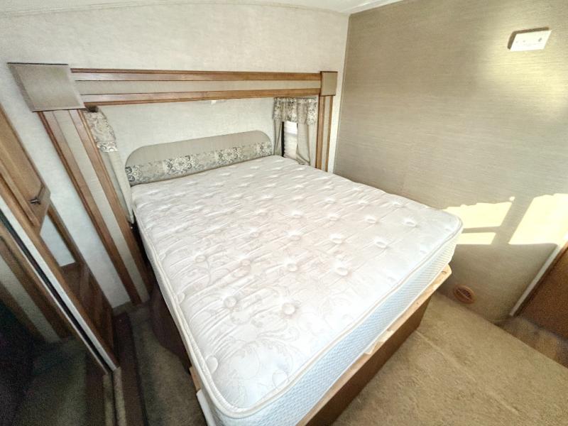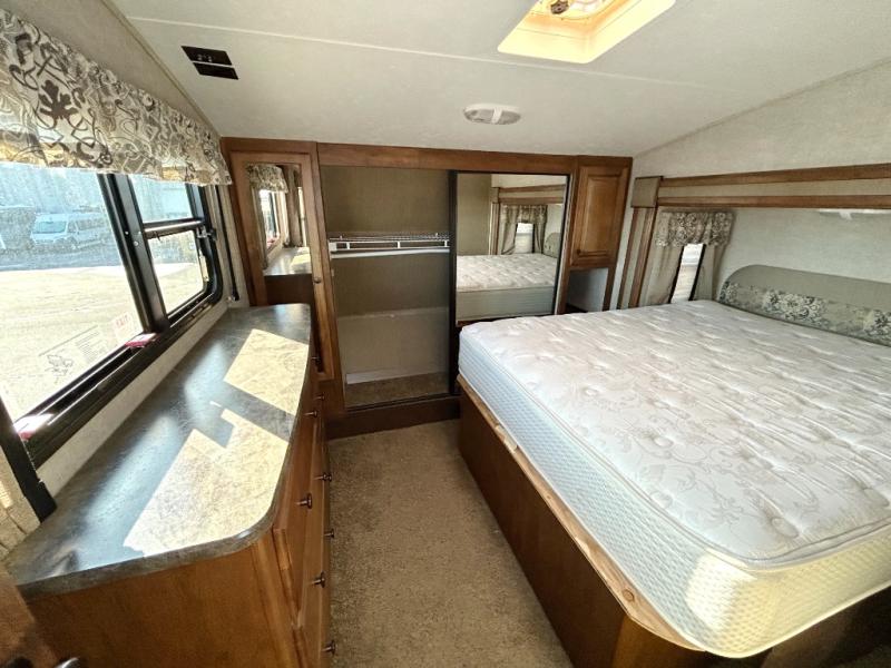 The private front bedroom features a slide-out king bed with dresser opposite, and full front wardrobe with sliding doors, and so much more!