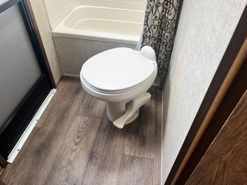 The other rear corner features a set of queen bed bunks which means this Sprinter model 278BHS sleeps 9 individuals comfortably.