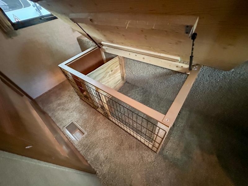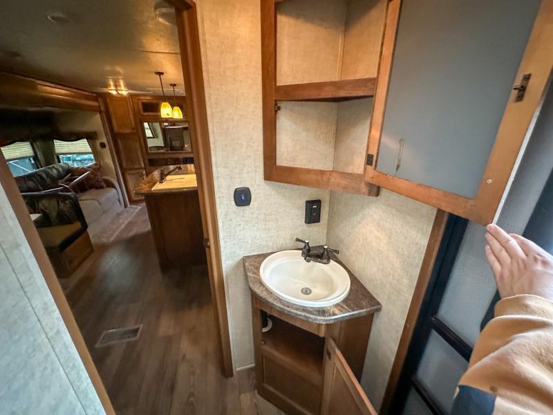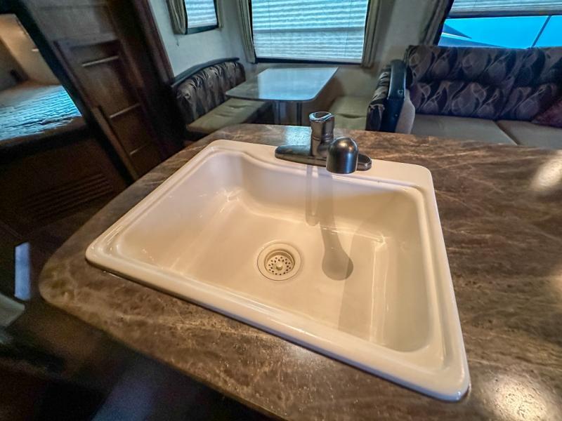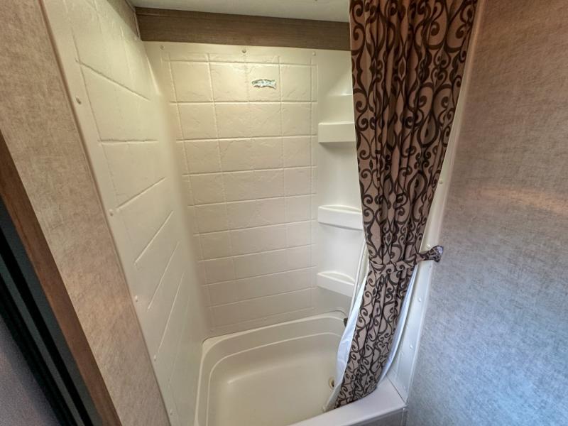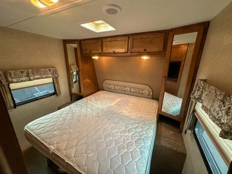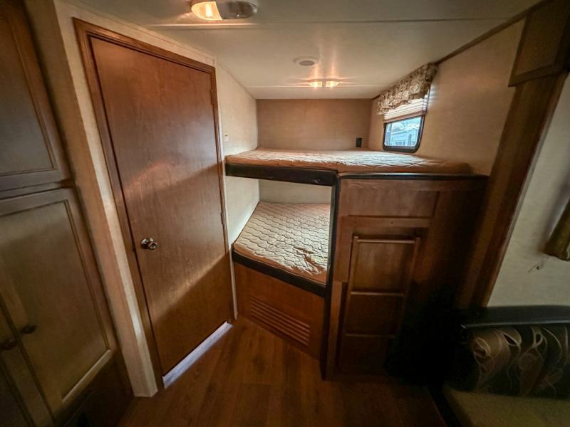 The other rear corner features a set of queen bed bunks which means this Sprinter model 278BHS sleeps 9 individuals comfortably.